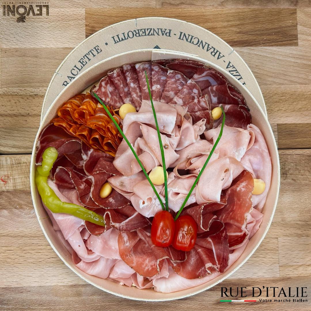 Pour vos événements particuliers (repas de famille, baptême, communion) ou professionnels, Rue d’Italie propose un service traiteur généreux : lasagnes, plateaux charcuterie / fromages, et des créations sur mesure comme des mignardises et des verrines. De quoi composer un moment convivial, simple à partager, avec de vraies saveurs italiennes.