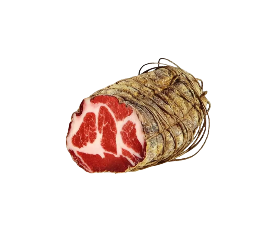 La Coppa de Parme I.G.P est une charcuterie d’exception, ficelée à la main selon la tradition. Affinée lentement, elle développe une texture tendre et des arômes subtils de fruits secs et d’épices. Son goût doux et équilibré, relevé d’une délicate note de noisette, en fait un incontournable des plateaux de charcuterie. Savoureuse et raffinée, elle se déguste idéalement en fines tranches.