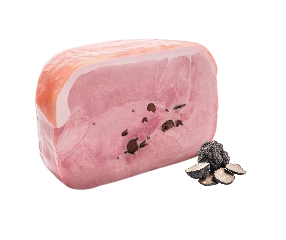 Le jambon cuit à la truffe Levoni est une charcuterie d’exception, élaborée à partir des meilleures cuisses de porc rigoureusement sélectionnées. Agrémenté à la main de truffes entières et en copeaux, il est lentement cuit à la vapeur pour préserver sa tendreté et son goût raffiné.