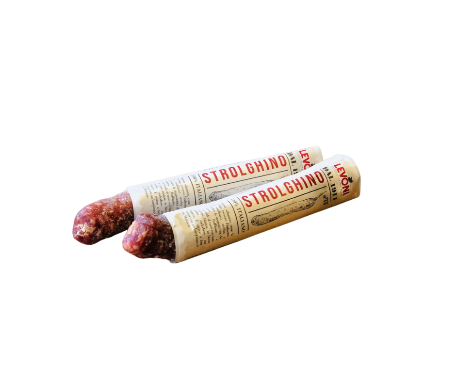 Le Strologhino est un saucisson typique de la plaine du Pô, dans la province de Parme, fabriqué à partir des parties maigres de la cuisse de porc. Son nom vient du mot local « Strolga », qui signifie sorcière ou devineuse. Selon la tradition, il était fabriqué pour « prévoir » la maturation des autres charcuteries, car c’était le premier prêt à la coupe. Avec un affinage court, ce petit saucisson se mange très frais, offrant ainsi une texture tendre et un goût délicat.